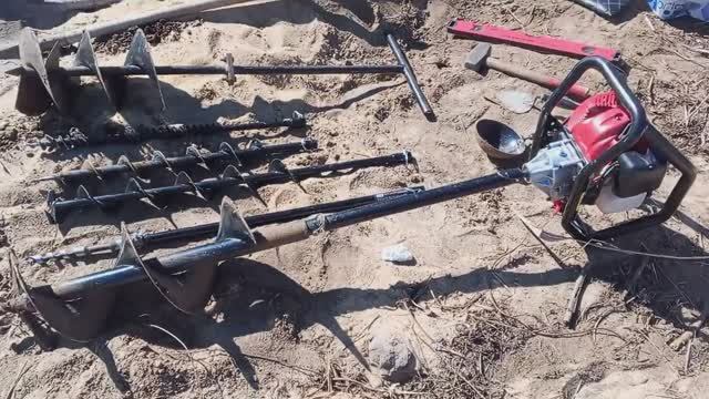 Работы и самоделки . Начинал бурить 30 лунок под столбы мотобуром . Грунт очень сложный .