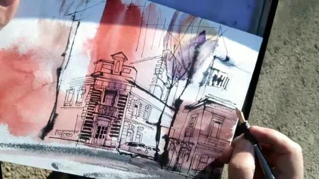 ГОРОДСКАЯ ЗАРИСОВКА акварель перо Watercolor UrbanSketch Demo Real Time
