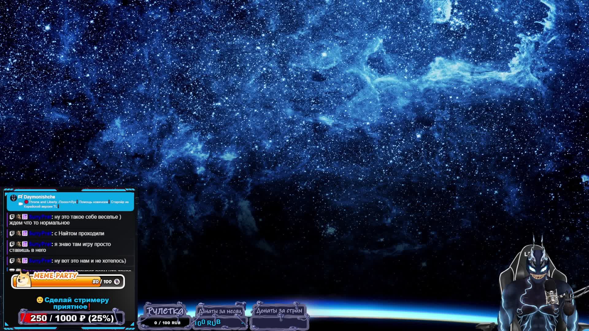 📣Мои социальные сети❗- https://taplink.cc/daymonishche Стриммерством занимаюсь фултайм, и это мой единственный заработок, если у вас есть желание поддержать канал, вот способы как это сделать: 💲1-DonationAlerts Рулетка запускается тут!- https://clck.ru/36VfBR 💲2-Поддержать напрямую Карта МИР Сбербанк- 2202 2067 8729 8624 💲3-Yoomoney- https://clck.ru/37Dfe3 -Без оповещения 💲4-Donatepay- https://clck.ru/37Dfba -Если не получается поддержать через DonationAlerts Благодарю за вашу поддержку❗ ___________________________________________________________________________________________________ Прайс-лист 1️⃣-Отключить аватара на весь стрим (стример покажет своё настоящие лицо)-4999 руб 2️⃣- Заказ Аниме: 500р. за 1 серию (заказ только сразу на фулл аниме) 3️⃣-Заказ фильма: 3999р. 4️⃣-Заказ музыки 50р не длиннее 7 мин, лютый треш могу выключить. ___________________________________________________________________________________________________ 🎸🤣💥Развлечения на стриме❗ 1️⃣🎸Закажи песню на стриме❗-https://donateall.online/s/daymonishche 2️⃣🤣Порадуй зрителя и стримера крутым мемасом❗- https://memealerts.com/6576818d422c4bf13b328d96 3️⃣💥Хочешь отключить экран/клавиатуру/мышку стримеру или кинуть скримера и светошумовую гранату на весь его экран❓ Тебе сюда❗- https://streamengine.app/@daymonishche/effects ___________________________________________________________________________________________________ https://clck.ru/35XhRk – лучшие игровые предметы по моему кодовому слову! Реклама. ООО «АСТРУМ». ИНН 7714480355 ERID 2VtzqxTGdmq 🎁Секретное слово для приобретения сундуков - Даймон 🎮https://trk.mail.ru/c/wm7t23?mt_sub1=4257423 -Начни играть в ArcheAge с бонусами! Реклама. ООО «АСТРУМ». ИНН 7714480355 ERID 2VtzqwHGHQ3 📢Гайд на ведьмака+ мини гайд на угнетателя- https://youtu.be/PpGj8LNDYoE ___________________________________________________________________________________________________ ❗️❗️Правила канала❗️❗️ 1️⃣-Если стример или модераторы заметят что вы абузите твинов в розыгрыше БАН! 2️⃣-Будьте доброжелательны к другим зрителям и стримеру 3️⃣-Избегать обсуждения религии и политики 4️⃣-Мат в меру или пропишу БАН! 5️⃣-За расизм, сексизм, гомофобию и т.п. можно отлететь в БАН! #tl #archeage #daymonishche #стрим #streamer #стример #top #топ #даймонище #архейдж #recommended #рекомендации #venom #веном #тл #тронлиберти #тронэндлиберти #throneandliberty #throneliberty