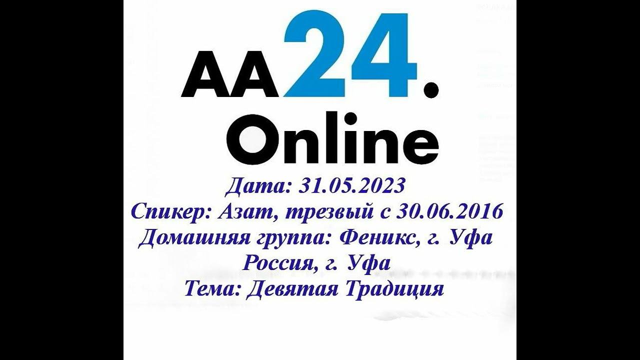 31.05.2023 Азат, трезвый с 30.06.2016 Россия, г. Уфа Феникс, г. Уфа ТЕМА: Девятая Традиция