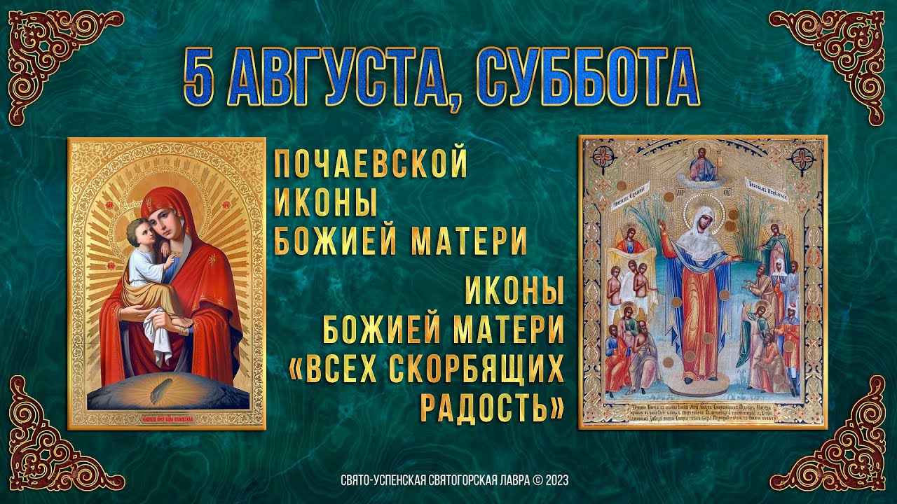 В субботу, 5 августа, православные христиане молитвенно воспоминают Почаевскую икону Божией Матери. Образ известен всему славянскому миру и находится в Почаевской Лавре. Его передала в дар обители дворянка Анна Гойская после чудесного исцеления в 1597 году. По молитвам к Богородице случилось чудесное избавление почаевского инока от татарской неволи в 1674 году. Монах, который попал в плен, вспоминал величественный Почаев, его святыни и храмы, монастырские богослужения. В слезах он молил Пречистую Богородицу об освобождении из неволи. После просьб инок как бы забылся, и вдруг он ощутил себя на Почаевской горе у врат обители. В руках у него оставались узы, в которых был закован. С радостью вошёл он в храм и со слезами возблагодарил Богоматерь за своё чудесное спасение. Дивную помощь явила Пресвятая Богородица в 1675 году, когда турки осадили Почаевский монастырь. Силы были неравны, и всю надежду братия возложила на Богоматерь. День и ночь со слезами молились иноки перед чудотворным образом. Когда вместе запели «Взбранной Воеводе победительная», над храмом явилась Божия Матерь, простирающая над обителью Свой омофор. Её окружали Ангелы в воинских одеждах и с мечами, подобными молниям. Турки пускали стрелы в небесных воинов, но стрелы возвращались и ранили их самих. Ужас охватил неприятеля. В панике, не разбирая своих и чужих, они убивали друг друга. Защитники монастыря устремились в погоню и захватили многих в плен. Некоторые пленные впоследствии приняли христианскую веру и остались в обители навсегда. Сейчас Почаевская икона, как и многие века назад, находится в главном соборе Свято-Успенской Почаевской Лавры — над Царскими вратами. Также 5 августа прославляется икона Божией Матери, именуемая «Всех скорбящих Радость». В конце XVIII века была построена деревянная часовня на территории Императорского Стеклянного завода в Петербурге. Там находилась небольшая икона Богородицы «Всех скорбящих Радость». Когда-то она принадлежала ладожскому купцу Семёну Ивановичу Матвееву, который подарил святыню в благодарность за чудесное спасение в бурю. 5 августа 1888 года произошло чудесное событие. Во время страшной грозы молния ударила в кровлю часовни и начался пожар. Икона упала, а стоявшая рядом кружка для пожертвований разбилась вдребезги. Деньги рассыпались по полу, а к образу в разных местах приклеилось 12 медных монет. Икона уцелела в огне и чудесным образом обновилась. Весть о чуде быстро распространилась, к часовне потекли паломники. Многие болящие и страждущие приходили с молитвой к Пречистой Владычице и получали исцеление перед Её святым образом. Икону стали называть «Всех скорбящих Радость (с грошиками)», с неё писались многочисленные копии. На месте чуда были построены храм и часовня. В 1933 году храм был разрушен, а часовня закрыта. Чудотворную икону прихожане прятали по домам. Весной 1946 года они передали её в храм Святой Живоначальной Троицы. В 2018 году на прежнем месте восстановили часовню, и чудотворная икона Божией Матери была перенесена на место прославления. Подать записки о здравии и о упокоении https://vk.com/@svtreby-zapiski Реквизиты для пожертвований https://vk.com/@svtreby-rekvizity © Свято-Успенская Святогорская Лавра, 2023 г.