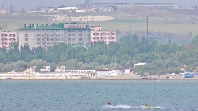 Анапа 28 июля 2019 г. Смотрим на Городской Центральный песчаный пляж с Набережной. Водолыжный парк.