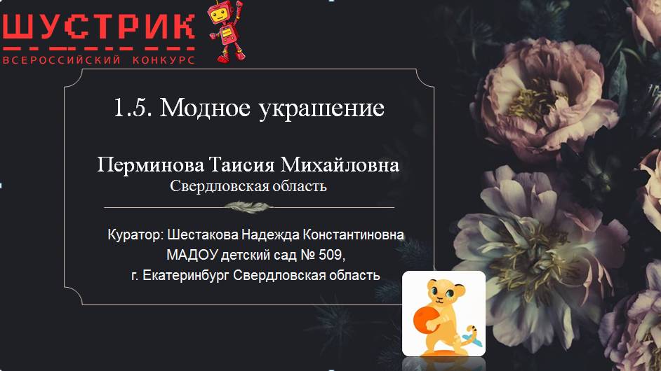 Победитель регионального этапа Всероссийского конкурса по научно-техническому творчеству ШУСТРИК – 2025! Конкурсная работа на основе 3D моделирования в программе «LigroGame» по теме 1.5. Модное украшение – подвеска «кулон-расческа». Автор проекта Перминова Таисия Михайловна, 6 лет, старшая группа МАДОУ детский сад № 509, г. Екатеринбург Свердловская область#ClassLigroGame Педагог-наставник Шестакова Надежда Константиновна. Почему я выбрала именно это конкурсное задание? Творческое самовыражение Дизайн украшений позволяет проявить креативность и индивидуальность. Художники и дизайнеры находят в этом процессе способ выразить свои идеи, эмоции и видение мира. Гибкость производства. Современные технологии, такие как 3D-печать и лазерная резка, делают процесс создания украшений более доступным и гибким, позволяя экспериментировать с формами и материалами. Моё «ноу-хау». Мне 6 лет и мы часто играем и украшаем кукол. В моём комплекте украшений я решила в подвеске совместить кулон и расческу. А кольца для волос помогли мне придать пышность прическе. Этапы проекта: • Создание карты признаков для моделирования; • Моделирование в программе «LigroGame»; • Печать на 3D принтере, из пэт; • Роспись 3D кулона; • Использование кулона в сюжетно-ролевой игре с куклами. Приобретенные навыки • способность к конструированию и изобретательству; • умение планировать свою деятельность; • умение формулировать проблему; • внимательность и исполнительность; • умение моделировать и рисовать. • Используемое оборудование и материалы Ноутбук с установленной программой для 3D моделирования «LigroGame», графическая карта «LigroGame» и карточки, фломастер, кукла. • Бюджет и применение Распечатка из ПЭТ составила 400 рублей (размеры указаны на фото). Украшения помогли создать новую прическу и потренировали мои пальчики (развитие мелкой моторки). При использовании этого украшения я сделала следующие выводы: Очень удобно иметь под рукой расчёску. С кольцами можно придумать разный образ. Я покрасила гуашью, но лучше акриловыми красками. Так лучше поддерживать украшение в чистоте. Попробовать распечатать из другого материала –это даст другое тактильное восприятие. Это универсальный подарок для девочек.