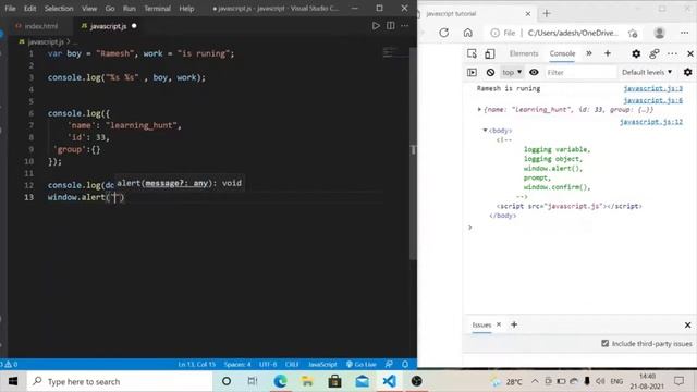 variables in javascript video description || You Tube video description cover topic : - 1. logging variable 2. logging object 3. prompt 4. window.alert 5. window.confirm what is javascript in html https://youtu.be/S4XnprIdgwg css full tutorial :- https://youtube.com/playlist?list=PLVLI41CSimnGdBnD1-2qJT856SpcsVlph HtMl full tutorial : - https://youtube.com/playlist?list=PLVLI41CSimnFXh99nWqiY0cFeHTokEqVt If you learn something from this video then subscribe my channel to get more video like that.