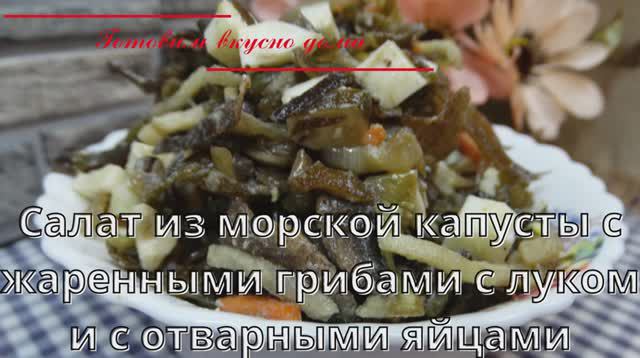 Салат из морской капусты с жаренными грибами с луком и с отварными яйцами