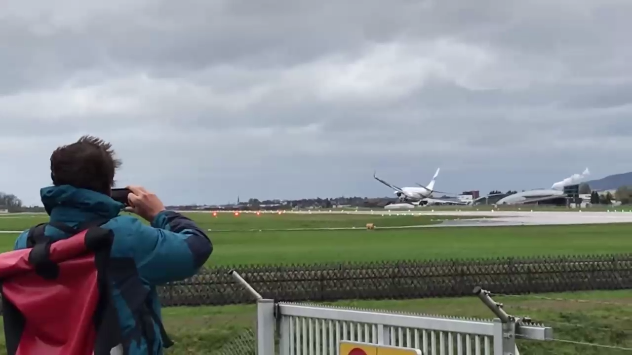 Польский самолет совершил неудачную попытку посадки в аэропорту Зальцбурга при сильном боковом ветре #неудача #ветер #посадка
