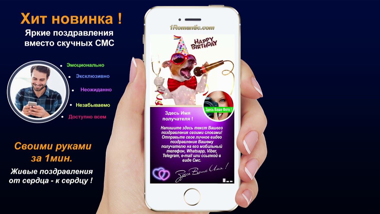 ЗАПОЛНИТЬ ЭТУ ОТКРЫТКУ СЕЙЧАС: https://1romantic.com/musicalnye-pozdravleniya/schas-spoyu/ Дорогие друзья! Вам остаётся только, написать нужный вам текст и загрузить свою фотографию. 1Romantic.com Является первым и единственным в мире сервисом интерактивных видео поздравлений. Мы используем собственную уникальную технологию, добавляя ежедневно самые новые и последние разработки программирования. У нас Вы можете найти поздравления на любой вкус, только высокого качества и разрешения. Согласитесь, всегда приятней, отправить поздравления от себя лично, чем пересылать чужие, с уже заготовленным стандартным и быстро мерцающим текстом, как рекламный баннер, пересылаемый друг-другу от тысячи к тысячам где нет Ваших Имён. Задумайтесь ! Это выглядит слишком наивно и как минимум глупо, особенно для людей которые умеют писать и читать (на мою розочку сверкалку или стикер и отвали). Теперь всё будет иначе ! Вы можете сами передать своё настроение, тем людям, которым Вы будете адресовать своё поздравление. Теперь Вы сами, творец, художник и поэт своих чувств, наполняя видео открытку своими словами, излучая только самое доброе, искреннее из своих тёплых сердец. Загрузить свою любимую фотографию или фотографию получателя, что безусловно, будет гораздо приятней и неожиданней для него) Безусловно, мы подумали и о музыкальном оформление. Наверняка, Вы будете подбирать нужные слова и фотографию под ту песню, которую Вы захотите загрузить сами, а не ту которую Вам навязывают. Ну и самое главное, Вы можете использовать функцию добавления своего голоса, программа сама наложит Ваш голос на начало загруженной песни. Поверьте это очень оригинально, особенно если Ваш друг не слышал Вас долгие годы. Такое поздравление можно сделать действительно за 30-60 сек. Но если Вы творческий человек, оно не отпустит Вас так быстро))) И Вы будете думать, сочинять, плакать, улыбаться, восхищаться, раскрыв в себе новые таланты... возможно это станет Вашим первым собственноручным творением . Удачи Вам ! С уважением, Ваши Романтики ! Краткий список предлагаемых нами поздравлений... Поздравления с днем рождения женщине. Поздравления с днем рождения мужчине. Поздравления с днем рождения другу. Поздравления с днем рождения подруге. Поздравления с днем рождения для детей. Поздравления с днем святого Валентина. Поздравления Папе. Поздравления с днем рождения Маме. Прикольные поздравления. Видео поздравления с днем рождения. Музыкальные поздравления с днем рождения. Слайд-шоу с днем рождения. и многое-многое другое.