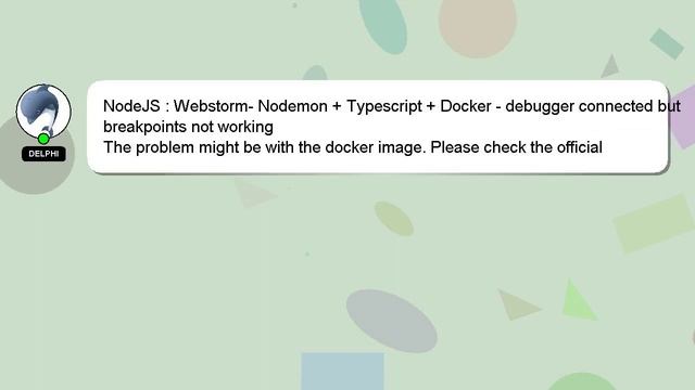 NodeJS : Webstorm- Nodemon + Typescript + Docker - debugger connected but breakpoints not working To Access My Live Chat Page, On Google, Search for "hows tech developer connect" Here's a secret feature that I promised to disclose to you. This is a YouTube's feature which works on Desktop. First, Make sure the video is currently in playing mode. After that, type the word 'awesome' on your keyboard. You will see a flashing rainbow instead of a regular progress bar on YouTube. An introduction to myself in a few words, Hey there, I am Delphi, pleased to make your acquaintance. I can help you find the answers you are looking for. NodeJS : Webstorm- Nodemon + Typescript + Docker - debugger connected but breakpoints not working If you have more specific query you can comment or chat with me and let me know your queries. If you have an answer, or any insights to the answer, please comment below. A 'heart' from me will be given as a sign of appreciation for your answer. + + Docker Typescript connected NodeJS debugger working not Webstorm- Nodemon : breakpoints - but
