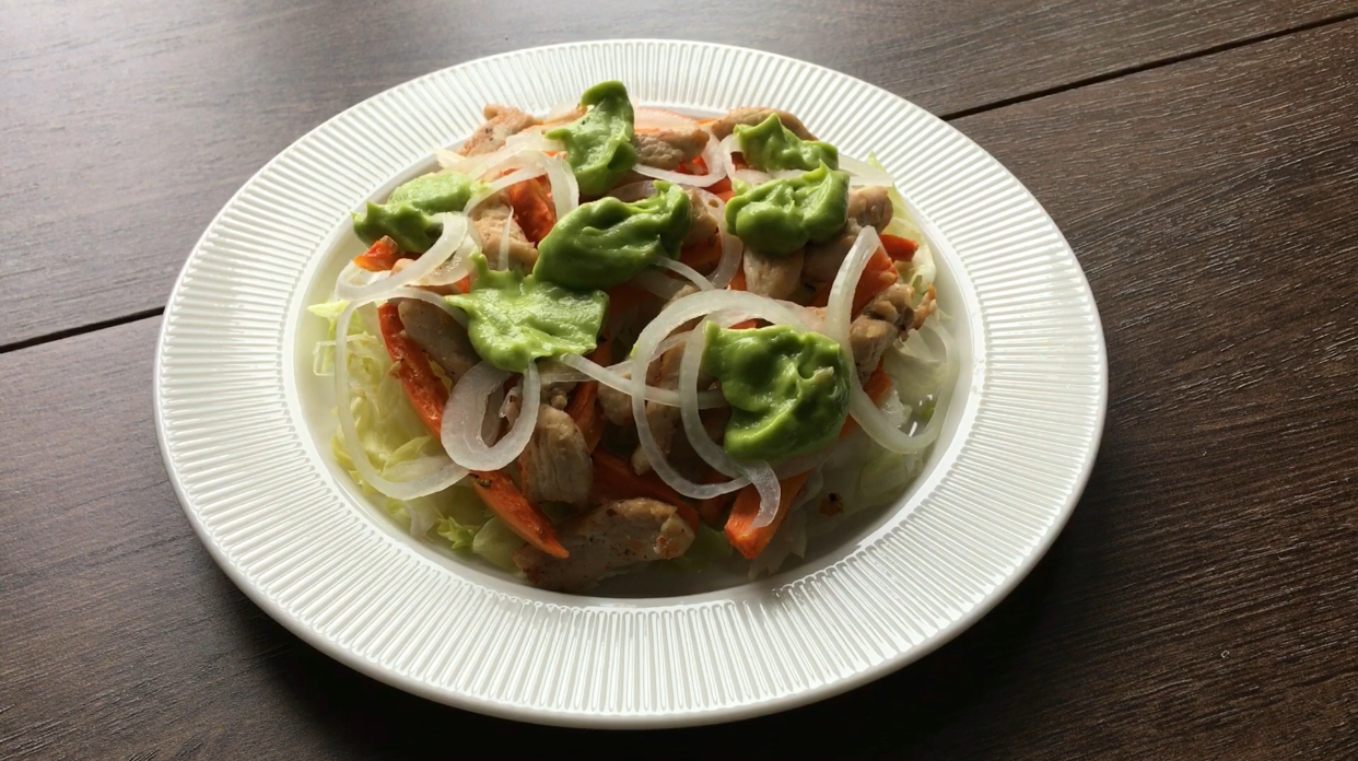 Вкуснейший свежий и сочный салат с печеной морковью! Обязательно попробуйте приготовить, если устали от майонезно-сырных салатов. [3 порции] - 3 небольшие куриные грудки соль, перец, оливковое масло - 1 большая морковь соль, лимонный перец, сухой чеснок, оливковое масло - 1 средняя луковица 0,5 ч.л. соли, 0,5 ч.л. сахара, 1 ч.л. уксуса - салат айсберг * соус - половина авокадо - 2 ст. л оливкового масла - лимонный перец - соль * советы - вместо куриной грудки можно взять куриное бедро - для мариновки лука подойдет любой уксус (рисовый, яблочный) - если не хотите добавлять масло в соус, добавьте немного воды