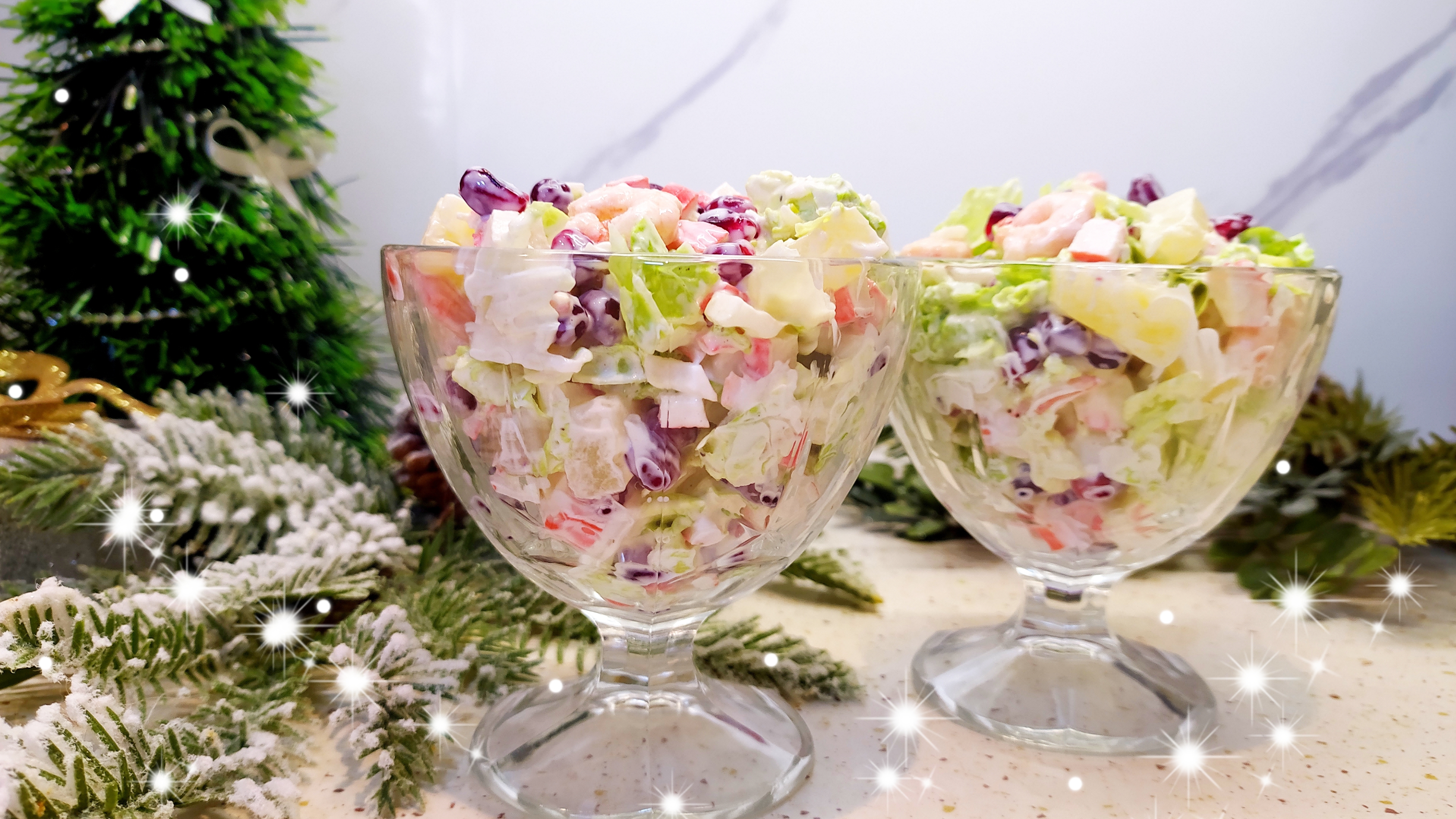 ИНГРЕДИЕНТЫ: Пекинская капуста-1 шт, Крабовые палочки-250гр, Ананасы-1 банка, Креветки-200гр, Гранат-1 шт, Соль, Майонез.