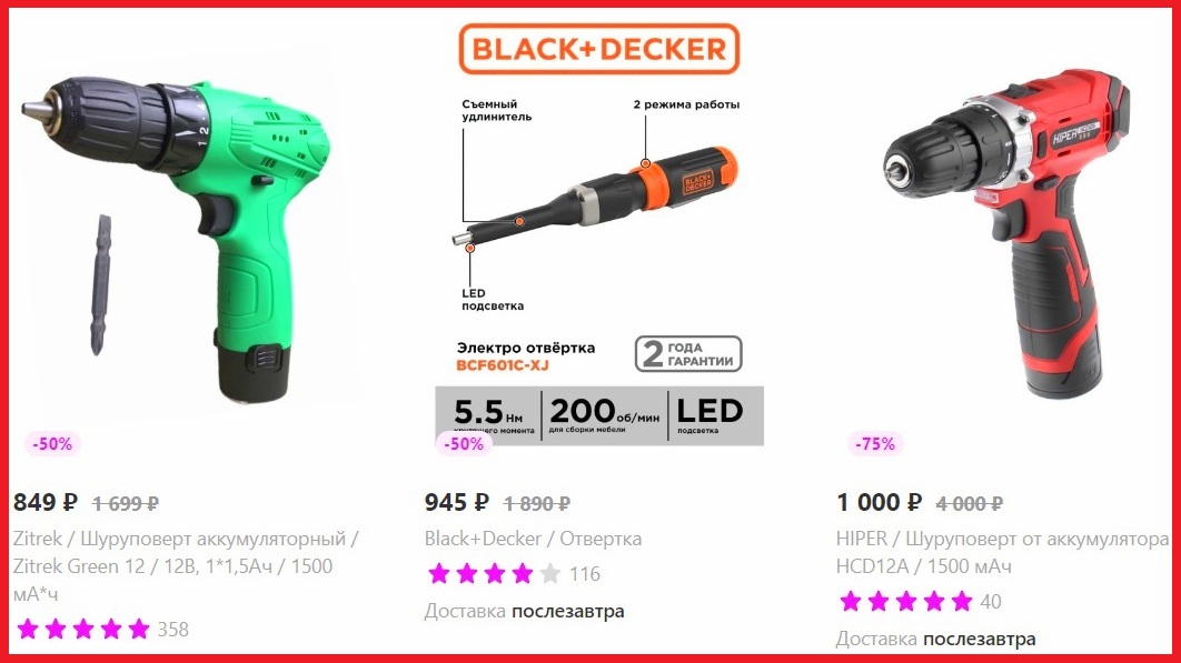 1. В этом обзоре рассказываю, где купить шуруповерты со скидкой до -75%. HIPER HCD12A шурик 26Nm за 1000р, https://www.wildberries.ru/catalog/89059580/ HIPER HCD18B шурик 32Nm всего за 1575р https://www.wildberries.ru/catalog/89059565/ Чтобы это не показалось рекламой Хайпера, там еще куча всего из Black+Decker со скидками до -75%. Был Еще Интерскол но я не успел. 2. Купил на разбор и продаю по запчастям новые AEG BS18G4 и BSB18SBL. Кому надо двигатель, патрон, корпус, кнопку, электронику - пишите в личку A_L_E_K_S_01@mail.ru 3. Купил новый комплект крутой дрели AEG BSB18CBL для теста и потом буду продавать по отдельным компонентам: тушку, АКБ 5Ач, быстрое ЗУ 4Ач, кейс. Новое на гарантии!