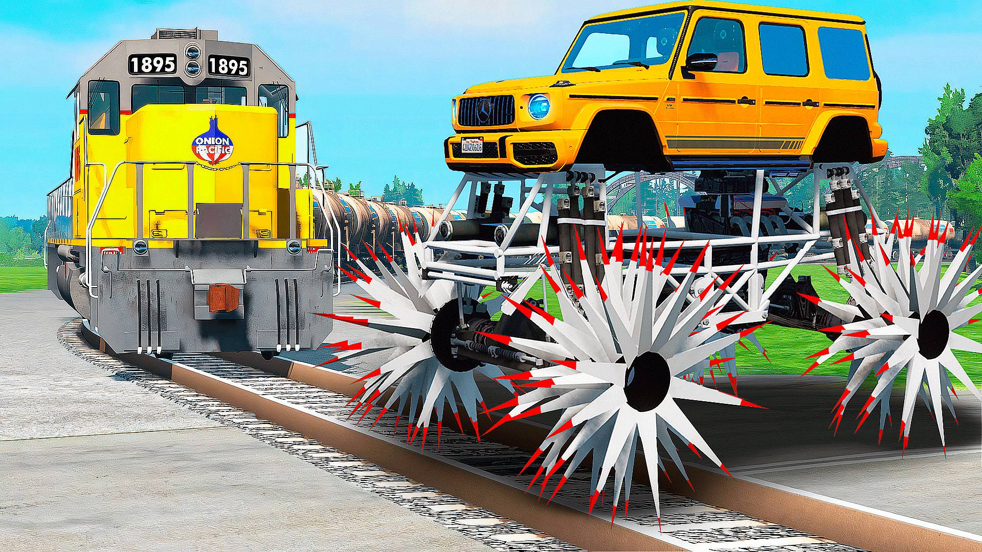 ПРОЕХАЛ РЕЛЬСЫ на ГИГАНТСКОМ ГЕЛИКЕ на КОЛЮЧКАХ в ГТА 5 МОДЫ - ЭКСПЕРИМЕНТЫ в GTA 5 MODS
