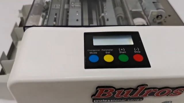 Больше оборудования на нашем сайте https://poligrafmall.ru Наименование A-40 Размер готовой продукции, мм 90 x 45, 50, 54, 95, 127 Размер подаваемого листа, мм A4 (210x297) Кол-во карточек на выходе из листа: до: 10 Макс. плотность бумаги г/м2 180-300 (0.18-0.30 мм) гм/м2 Примечание Автоматический нарезчик визиток/фотографий/бейджей Описание Автоматическая мультифункциональная машинка для нарезки визиток/фотографий/бейджей и прочей полиграфической продукции в условиях небольшого офиса или минитипографии. Современный дизайн. Металлический корпус и направляющие. Устройство автоматически захватывает лист из приемного лотка и подает его в узел резки, где поперечный гильотинный нож режет поперёк листа, а роликовые продольные ножи распускают лист вдоль. В результате резки получаются готовые визитки, фотографии, бейджи и прочая полиграфическая продукция с заданными размерами резки, которые выбирает оператор на панели управления. Готовая нарезанная полиграфическая продукция подаётся по две карточки за шаг и собирается в двух бункерах выходного лотка. Объём бункера: 250г/м2 70x2. Обрезки листа собираются в большом лотке под бункерами готовой продукции. За один проход возможно быстро и аккуратно разрезать листы формата А4 до 10 карточек 90х50мм., с вылетами 6 мм поперёк и 10 мм вдоль листа. Скорость резки А4 до 100 шт. за 3 минуты. Счётчик порезанных карточек. Общий счётчик порезанных карточек за всё время. Установка необходмого количества карточек. Рез с листа по метке. Регулируемый отступ от метки с шагом 0.1-1 мм. Регулируемые програмные настройки поперечного гильотинного ножа дистанции (поля) между карточек и отступа от края листа с шагом 0.1-1 мм. Автоматическая перенастройка размера реза карточки происходит с помощью кнопочного управления на панели. LCD дисплей показывает всю необходимую рабочую информацию по текущим настройкам и перенастройкам аппарата. Ресурс ножей около 100000 листов A4. Максимальный размер листа для резки: 210х297мм. Рабочая температура, влажность: -15~+40C, 35~70%. Габариты: 385x430x220 мм. Вес нетто: 20 кг. Размер, объём и вес в транспортной упаковке: 588mm X 508mm X 328mm =0.098m3, 26 кг.