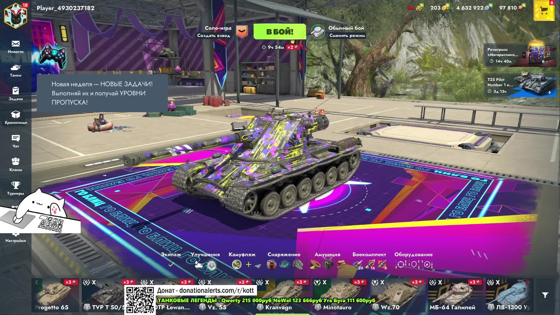 Донат ссылки: 💰 https://www.donationalerts.com/r/kott 💰https://new.donatepay.ru/@Kott ( может быть задержка несколько минут, бывает и не отображает ) Или на прямую: 4276 5213 9454 1613 СберБанк 410011738113332 ЮMoney Стрим на VK https://live.vkvideo.ru/tyhkuct Телега https://t.me/tynkist Группа в контакте https://vk.com/TyHKuCT Прайс по услугам: Взвод 3 боя - 300руб (3 боя минимум) RU/EU сервер, не больше 10 боев за раз Чек Аккаунта 200р ( Указывайте сервер и ник ) RU/EU сервер Чек Реплея 1000р - реплей отправлять в чат тг или в вк Заказ танков: ВАЖНО: "3 БОЯ МИНИМУМ" И не больше 10 за раз, договаривайтесь со стримером. Цена указана за 1 бой: FV215b 183 250р Ис 7 - 150р КВ 2 - 250р Foch 155 - 300р Т95 - 250р Цены на другие танки, уточняйте у Стримера! Мой ПК: Корпус MONTECH KING 95 Материнская плата MSI PRO Z790-A WIFI Процессор Intel Core i7-13700KF Система охлаждения MSI MAG CORELIQUID 360R V2 ОЗУ Acer Predator Pallas II DDR5 64 ГБ 6000 МГц Блок питания MONTECH TITAN GOLD 850 500 ГБ SSD M.2 накопитель Kingston FURY Renegade 2 ТБ SSD M.2 накопитель ADATA LEGEND 900 2 ТБ Жесткий диск Seagate BarraCuda Видеокарта Palit GeForce RTX 4070 Ti GamingPro Сетевая карта TP-Link TX201 МИКРОФОН FIFINE Ampligame МЫШКА ZET GAMING Renegade Wireless Колонки Genius SW-G2.1 2000 Мониторы: Основной ARDOR GAMING HORIZON AQ32H3 Второй Samsung C32JG51FDI Третий DEXP DF24N1 ( вертикальный )