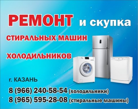 Ремонт и скупка холодильников и стиральных машин в Казани. Опытные мастера произведут ремонт холодильников и стиральных машин. Также возможна скупка холодильников и стиральных машин в рабочем или нерабочем состоянии. Республика Татарстан, г. Казань Тел.: 8 (966) 240-58-54 - Ремонт холодильников Тел.: 8 (965) 595-28-08 - Ремонт стиральных машин Тел.: 8 (966) 240-58-54 - Скупка холодильников и стиральных машин В Интернете (в поисковиках) нас находят, в частности, по таким словам: ремонт холодильников Казань, скупка холодильников Казань, ремонт стиральных машин Казань, скупка стиральных машин Казань. #ремонтхолодильников #Казань #скупкахолодильников #Татарстан #ремонтстиральныхмашин #республикаТатарстан #скупкастиральныхмашин
