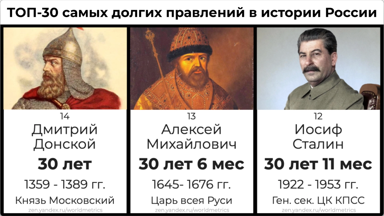 ТОП-30 самых долгих правлений за всю историю России. Входит ли В.В. Путин в первую двадцатку?