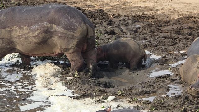 Огромное количество бегемотов на реке Нил в Уганде