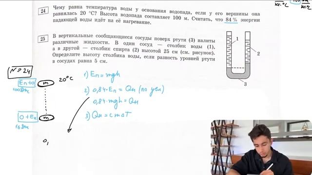 Чему равна температура воды у основания водопада если у его вершины она равнялась 20 С - 28297