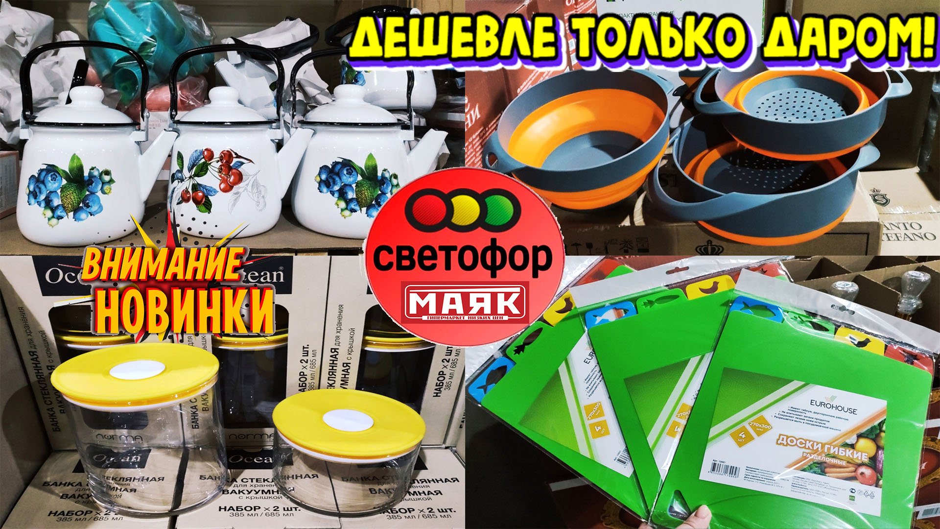 Обзор магазина низких цен Светофор Маяк. Привезли новую посуду и товары для кухни.