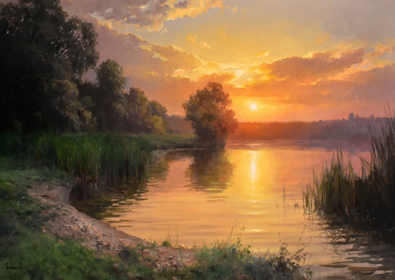 Летние рассветы и туманы на картинах Романа Божкова.