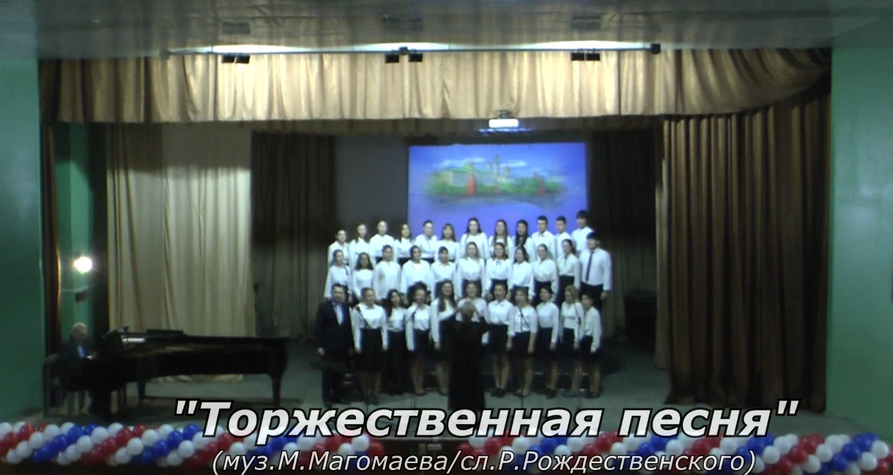 В исполнении хора студентов музыкального образования Тверского педагогического колледжа звучит "Торжественная песня" Муслима Магомаева на слова Роберта Рождественского. Руководитель коллектива - Заслуженный учитель РФ Макарова Валентина Константиновна. Концертмейстер - Отличник народного просвещения РФ Филатов Александр Леонидович. Солисты - Анастасия Пшеничная и Егор Шмаков