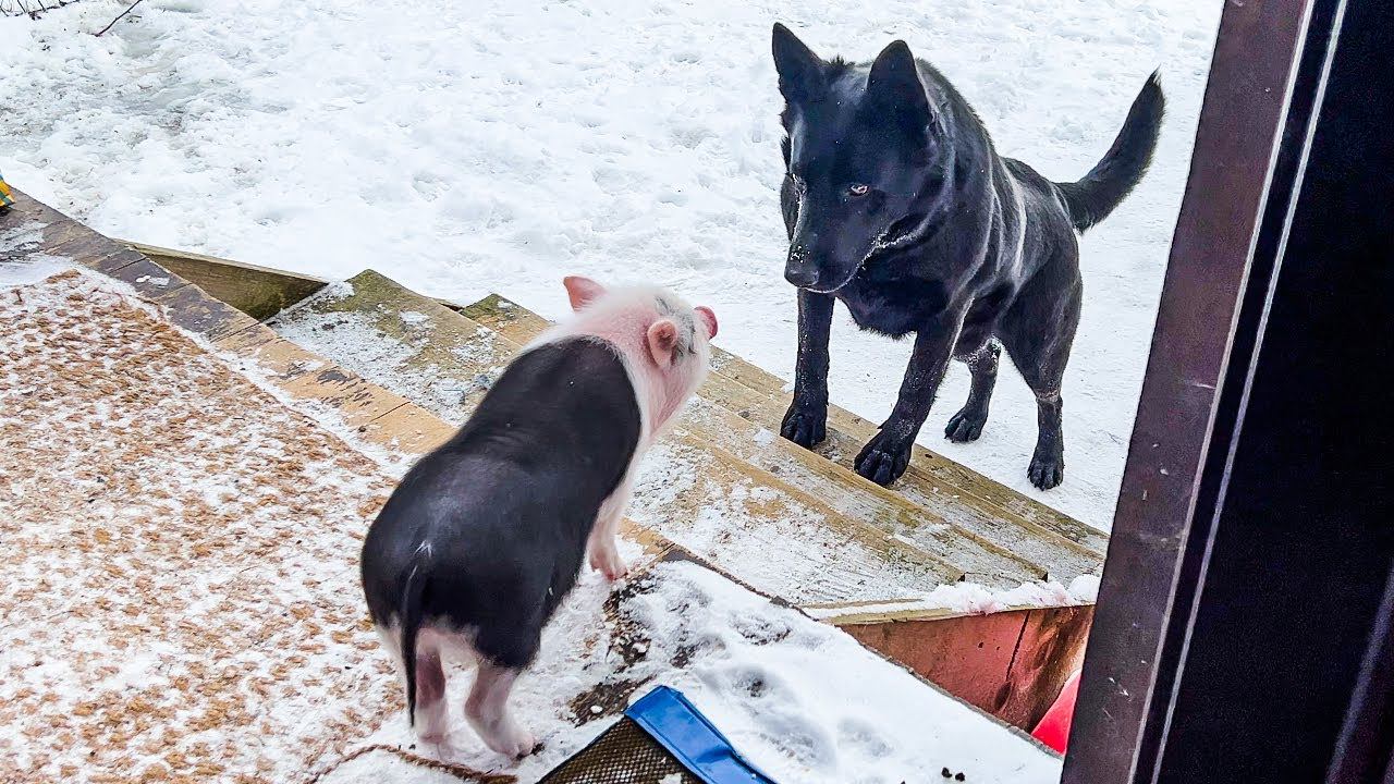 ОВЧАРКА В ШОКЕ ОТ МИНИПИГОВ / Рысь Ханна с тазиком охотится на Умку / Подробности о вольере собак