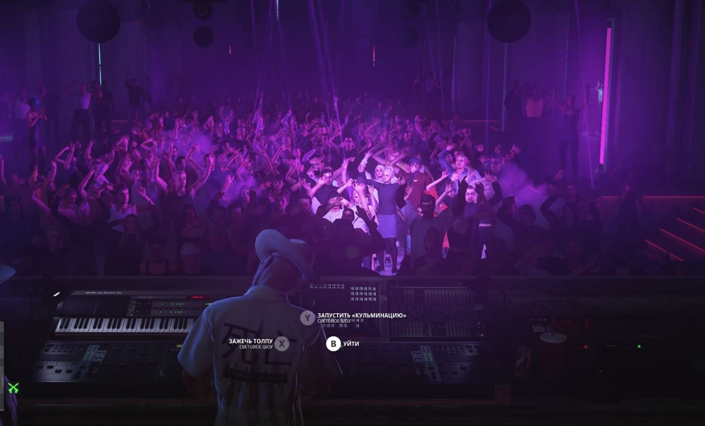 Для выполнения задания вам нужно начать миссию у входа в клуб, переодеться диджеем и запустить "кульминацию". 00:00 планирование миссии Вам нужно выбрать точку начала миссии у "Входа в клуб" . Не берите с собой оружие или спрячьте его в мусорке, чтобы пройти обыск на входе. 00:17 спуститесь в клуб Пройдите через обыск охранником, пройдите по коридорчику и поверните сразу налево. Там выйдите в двери и двигайтесь по красной дорожке к лестнице. Спускайтесь на первый этаж клуба. Спустившись с лестницы, двигайтесь к противоположной стене, и зайдите в дверь справа. 1:26 переоденьтесь диджеем Сразу подойдите к красной тумбе и взаимодействуйте с ней, чтобы испортить аппаратуру. Спрячьтесь за углом и ждите, пока что диджей не подойдет чинить поломку. Оглушите и спрячьте в короб, переоденьтесь. 2:28 станьте диджеем Зайдите в диджейскую комнату, и замените диджея у пульта. Нажмите кнопку, когда у вас появится возможность запустить "кульминацию". Дождитесь ее начала, и испытание будет выполнено.