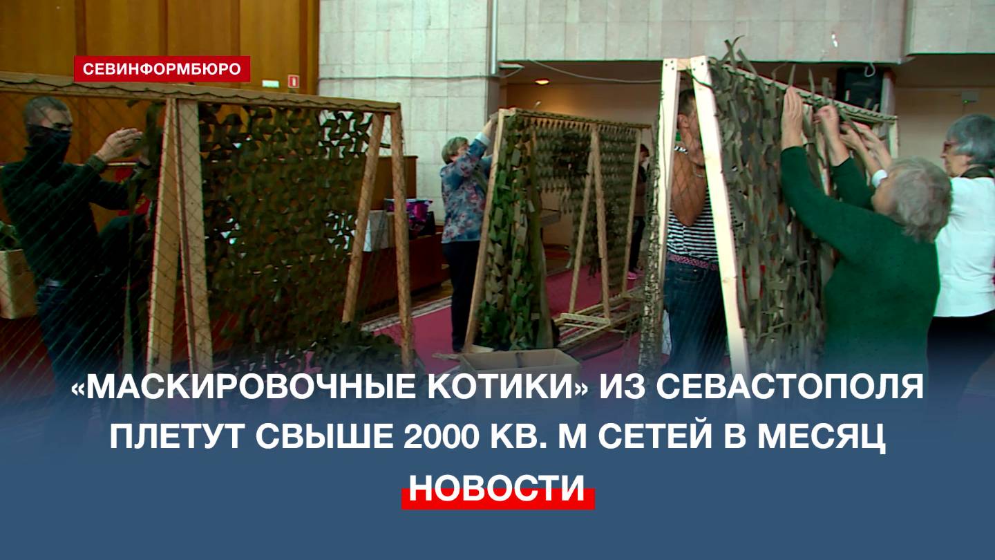 Волонтёры проекта «Маскировочные котики» плетут за месяц более двух тысяч квадратных метров сетей на фронт. Участники объединения работают в актовом зале администрации Гагаринского района Севастополя, куда может прийти помочь любой желающий. Подробнее о проекте – в новом выпуске рубрики «Всем миром – всем народом». Подписывайтесь на наш Телеграм-канал: https://t.me/nts_novosti Смотрите новости Севастополя и Крыма на сайте НТС: http://nts-tv.com В нашей группе "ВКонтакте": https://vk.com/ntssevastopol На странице в "Одноклассниках": https://ok.ru/ntssevastopol