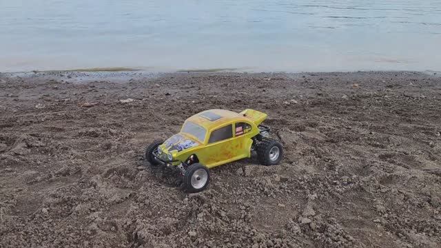 Машинка на дистанционном управлении гоняет по пляжу. Видео для детей.