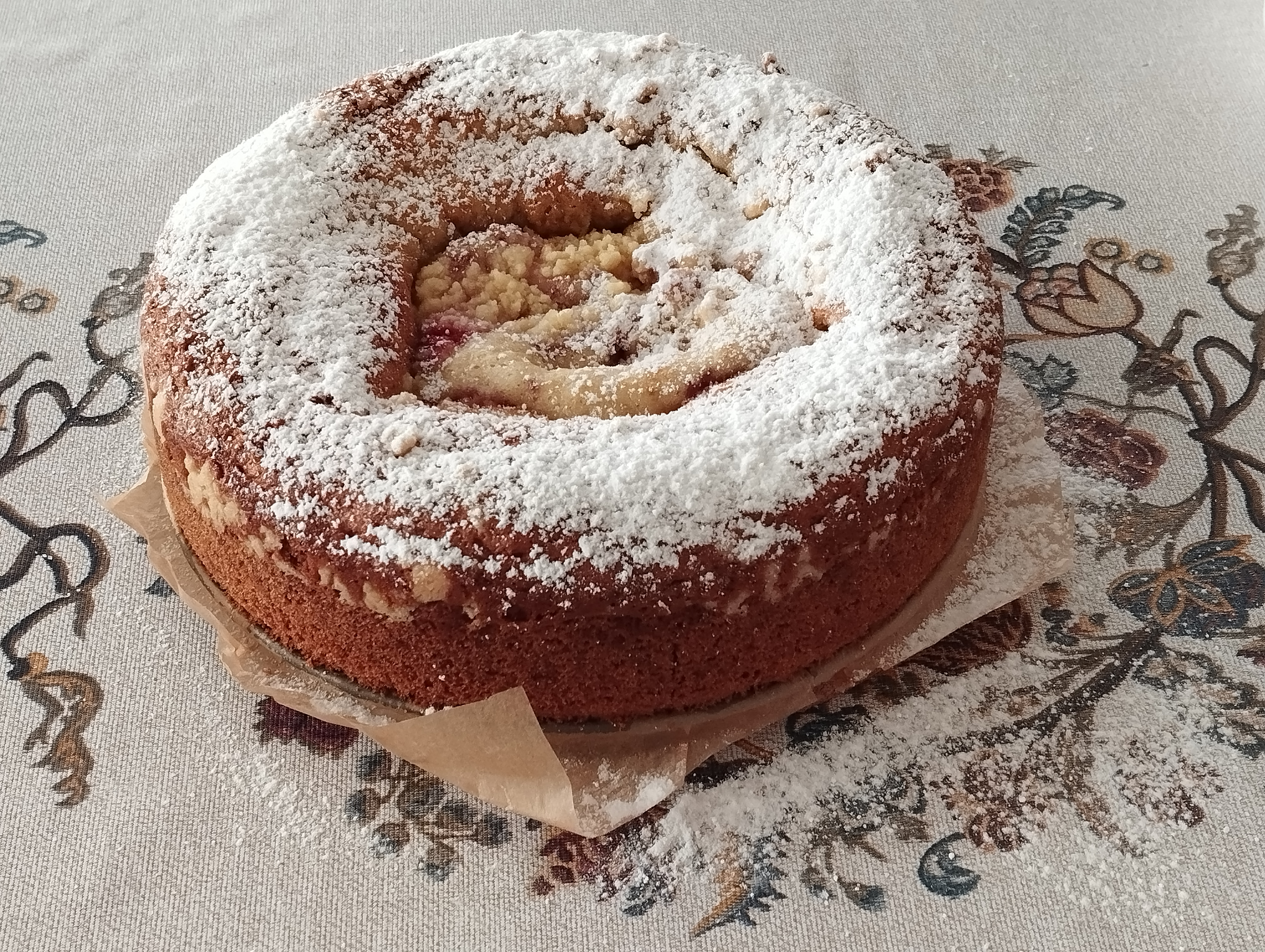 РЕЦЕПТ : мука 230 г яйца 2 шт. молоко 100 г растительное масло 100 г разрыхлитель 1,5 ч.л. ванильный сахар 10 г соль щепотка сахар 150 г джем 150 г или густое варенье крошка ( штрейзель) масло сливочное комнатной температуры 50 г сахар 3 ст.л. мука 4-5 ст.л.