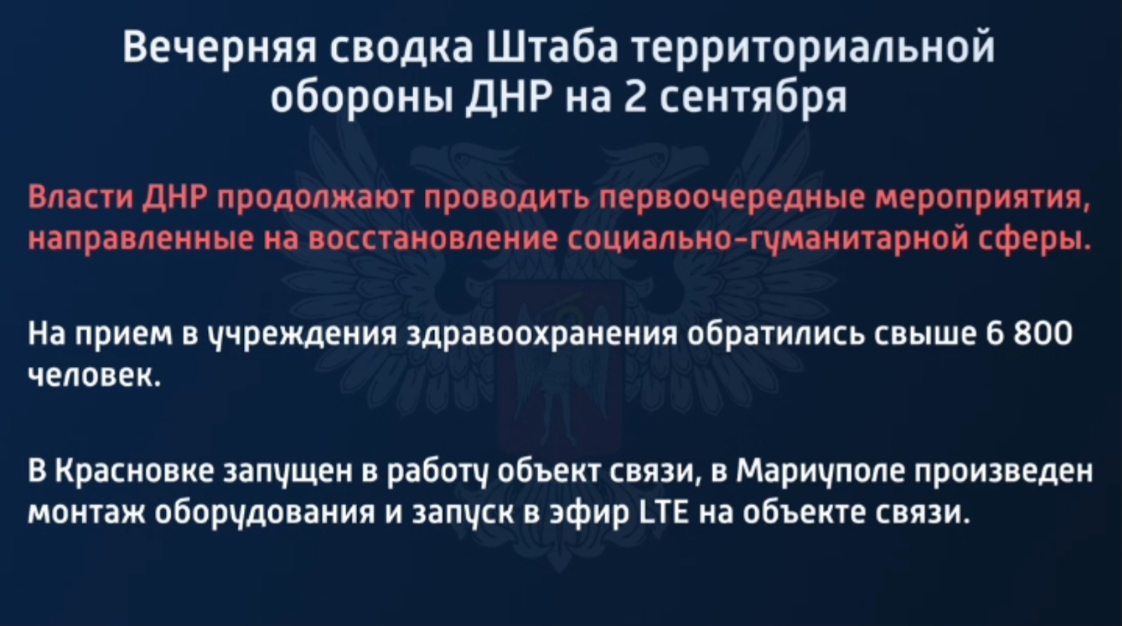 Вечерняя сводка Штаба территориальной обороны ДНР на 2 сентября 2022 года