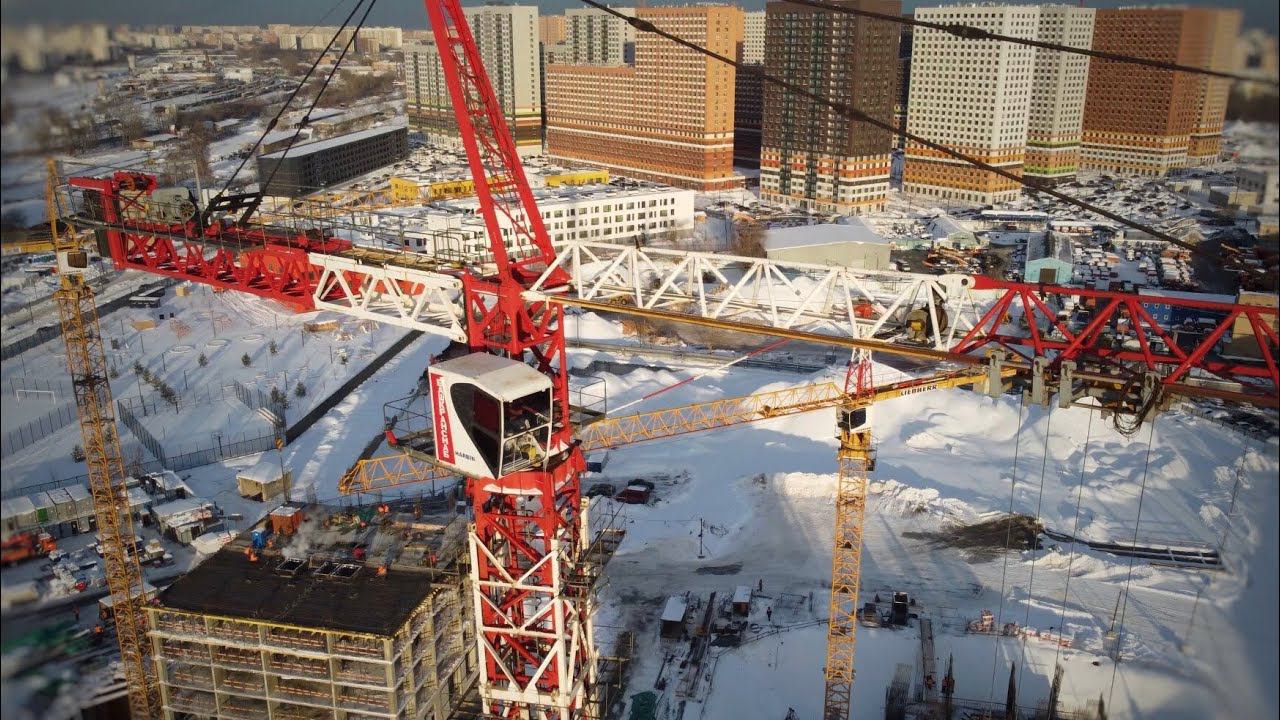 ЯРКИЙ ВЕЛИКАН! Башенный кран QTZ-250. Солнечный зимний день. Люблинский парк. Tower crane