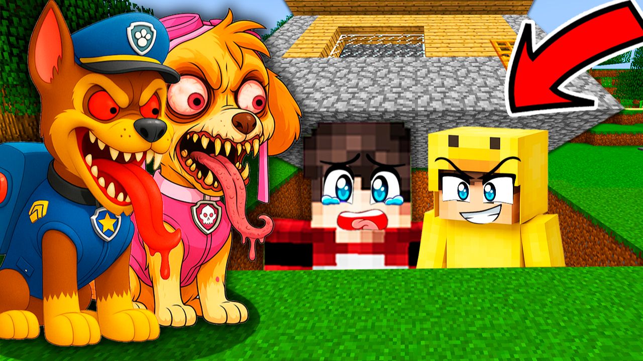 МЫ С СЫНКОМ СПРЯТАЛИСЬ под ДОМОМ ОТ СКАЙ ЕХЕ и ГОНЩИКА ЕХЕ ЩЕНЯЧИЙ ПАТРУЛЬ В МАЙНКРАФТЕ