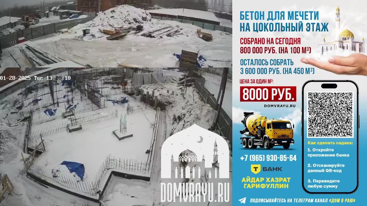 Строительство Первой Дальневосточной Соборной Мечети. Адрес расположения: г. Хабаровск, ул. Выборгская 4 Застройщик: РО "Духовное управление мусульман Дальнего Востока в составе ЦДУМ России" Разрешение на строительство №27-23-90-2022 Срок действия разрешения: 19.10.2027 Телеграмм канал, посвященный строительству мечети: https://t.me/domvrayu_mechet Сайт строительства Первой Дальневосточной Соборной Мечети: https://domvrayu.ru/ По всем вопросам участия в строительстве: +7 965 930-85-64 Айдар хазрат Гарифуллин