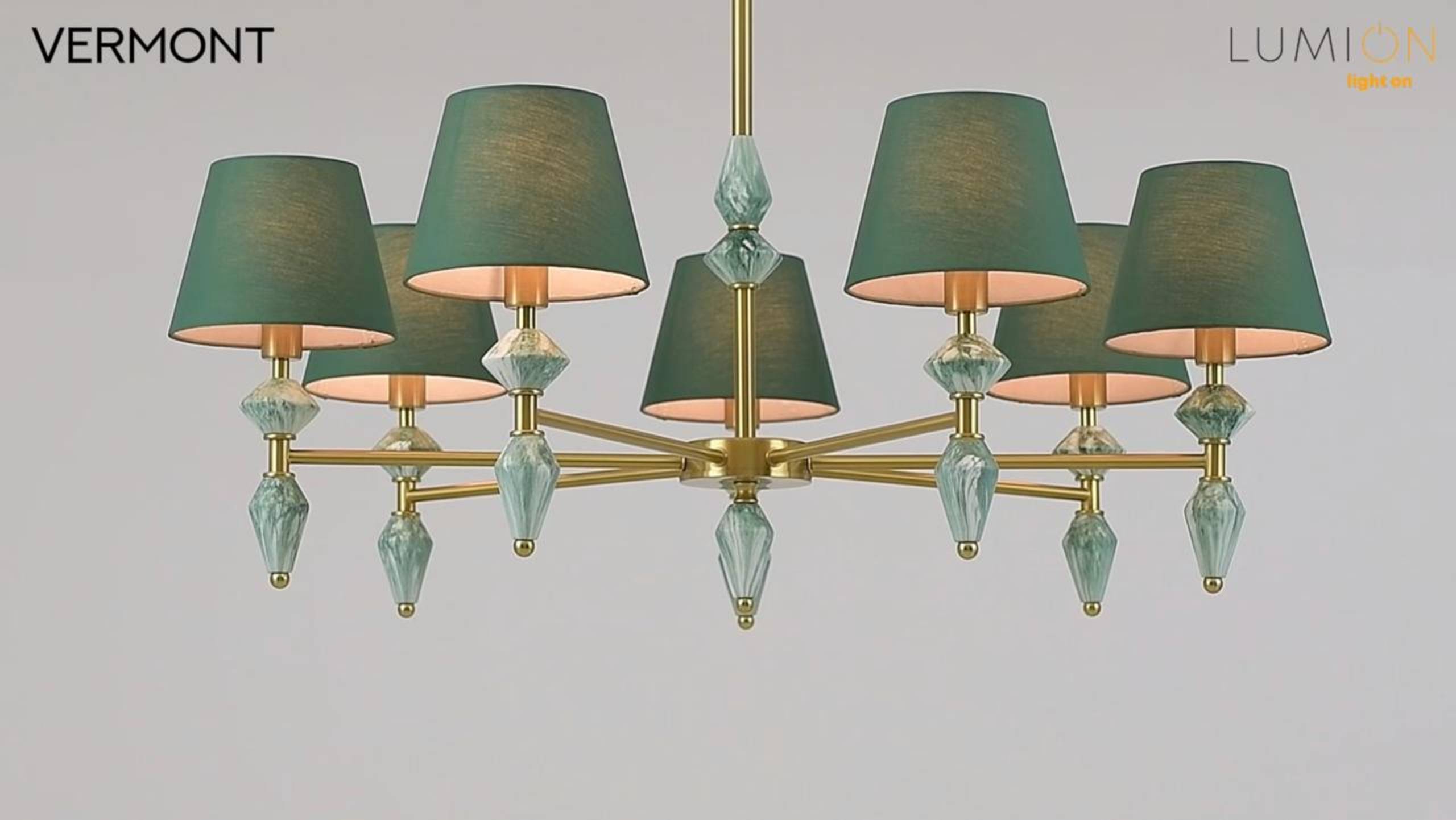 Линия светильников VERMONT поразит вас своей изысканной керамикой, удивительным образом имитирующей малахит. Малахитовая керамика сочетается с солидным зеленым цветом плафонов и арматурой в благородном латунном цвете. Изысканная классика не оставит вас равнодушными.