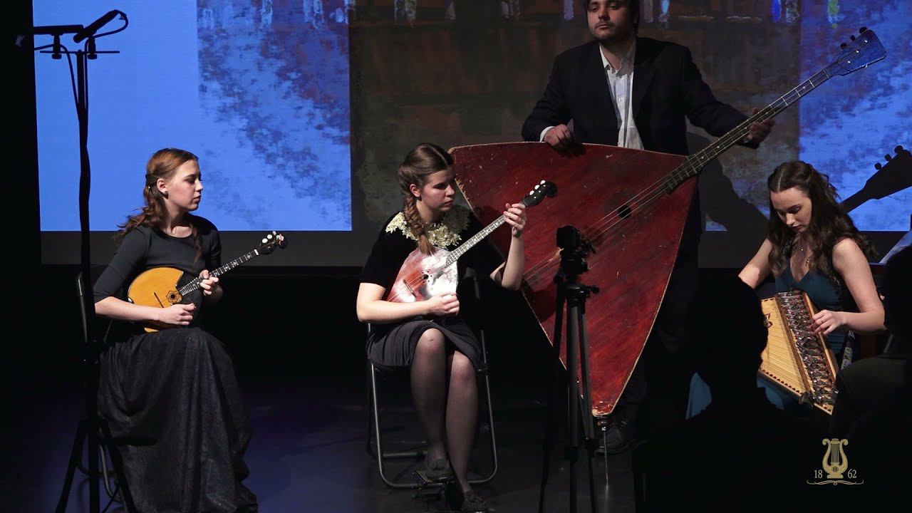 «Международная неделя консерваторий» ETHNO-CLASSIC-XXI БЕЛА БАРТОК (1881–1945) Пять румынских народных танцев для фортепиано, ВВ 68 (переложение для ансамбля народных инструментов) Анастасия БАРИНОВА, домра малая Валентина ЗЕНКОВА, домра альтовая Любовь САМАТОВА, гусли Никита СУХОВСКИЙ, балалайка контрабас Видеоинсталляция подготовлена Музеем искусства Санкт-Петербурга XX–XXI веков