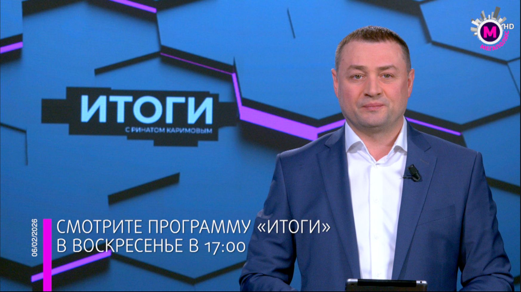 В воскресенье в 17:00 смотрите информационно-аналитическую программу «Итоги» с Ринатом Каримовым. Мы собрали для вас всё самое важное, что произошло в стране и в Югре за прошедшую неделю.
