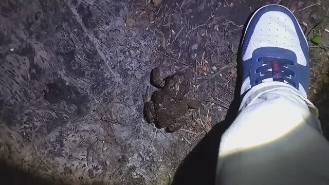 Огромная жаба на дороге