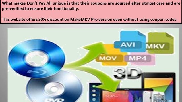 Why is there such a rush to get a makemkv discount?The answer is obvious. People want a tool that will allow them to watch a movie that is stored on DVD or Blu-ray discs.With MakeMKV they get a one-click answer to convert video into a patent free format.