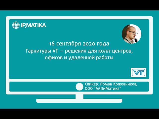 16 сентября 2020 года продакт-менеджер компании АйПиМатика Роман Кожевников провел вебинар "Гарнитуры VT — решения для колцентров, офисов и удаленной работы". Спикер напомнил участникам вебинара о портфолио гарнитур и представил новинки вендора.