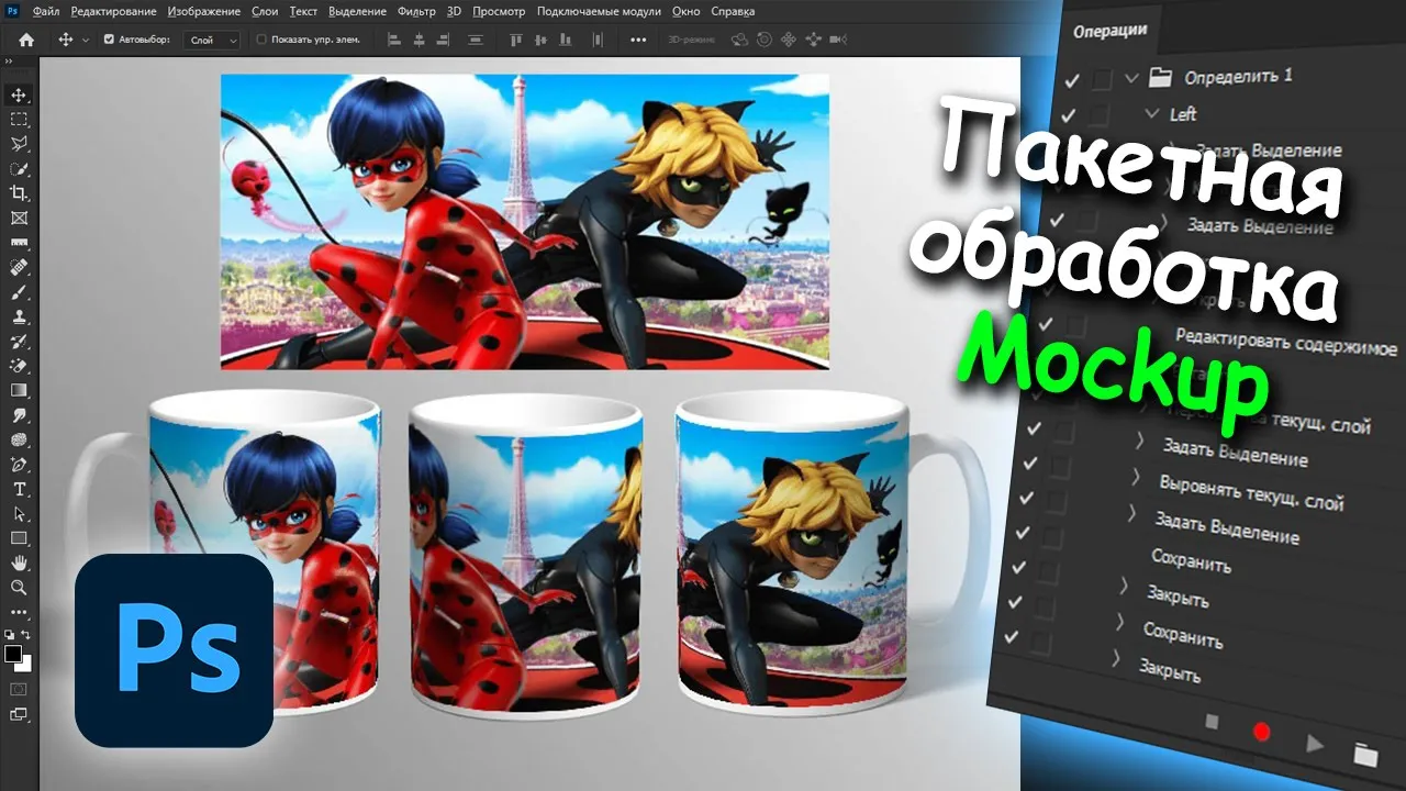 Пакетная обработка вставить картинки в Мокап в фотошопе