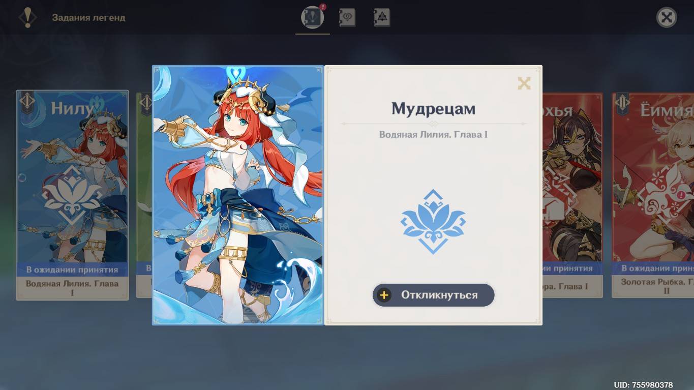 Genshin Impact. 0427. Задание легенд: Мудрецам: Водная лилия. (Нилу.)