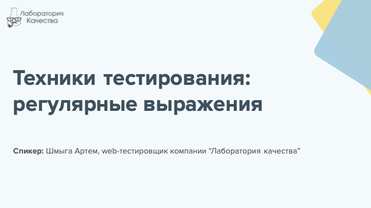 В данном видео Артем Шмыга, web-тестировщик компании "Лаборатория качества", говорит о техниках тестирования, а именно - о регулярных выражениях: что это, зачем и кому нужно? Смотрите нас также на YouTube-канале: www.youtube.com/channel/UCUKj7hvw6phelqZPKKJnGBQ