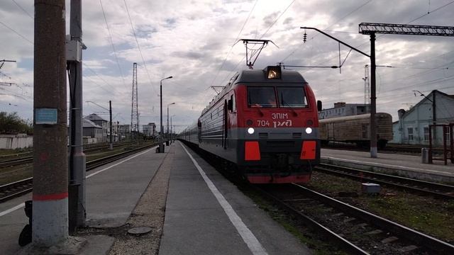 Скорый поезд № 125 сообщением Новороссийск — Москва прибывает на станцию Рязань-2 с локомотивом ЭП1М-704 #ржд #фпк #поезд #электровоз #эп1м #рязань