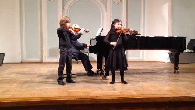 София Фирсова и Иван Терещенко,2-й класс ССМШ им.Гнесиных(партия ф-но - Владимир Поколенко). Концерт класса профессора В.Г.Иголинского в Рахманиновском зале Московской консерватории.