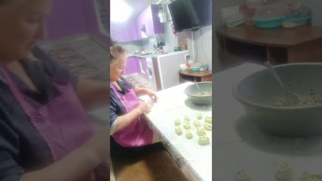 Затеялв тесто приготовила манты сочные и вкусные