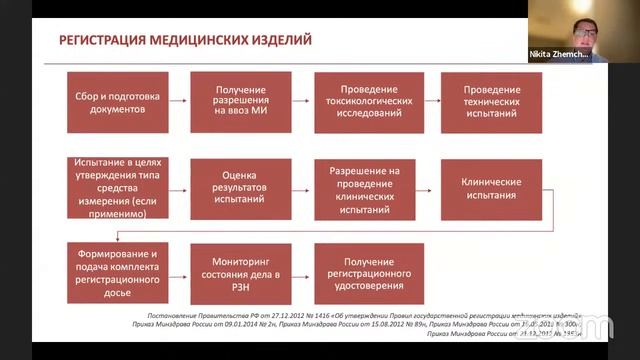 19.10 в 19:00 состоялось очередное занятие в рамках курса: «Life Sciences Law». Тема лекции: «Основы обращения медицинских изделий в РФ и ЕАЭС». Кто читает? Никита Жемчугов, юрист практики Здравоохранение и технологии BGP Litigation. Вы познакомитесь: С детальным разбором понятия медицинского изделия, его отличиями от иных смежных объектов Life Sciences; С источниками правового регулирования обращения медицинских изделий. Единым рынком медицинских изделий ЕАЭС; С особенностями регулирования программного обеспечения в качестве МИ; С нормативным регулированием МИ на различных этапах жизненного цикла (испытания, регистрация, лицензирование, импорт/экспорт и т.д.); С особенностями ответственности за нарушения в сфере обращения медицинских изделий.