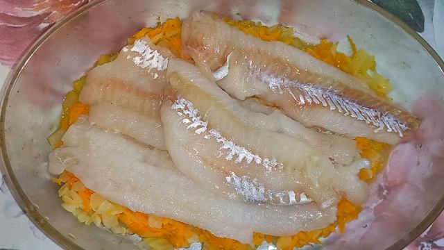 Филе минтая с овощами в духовке на ужин