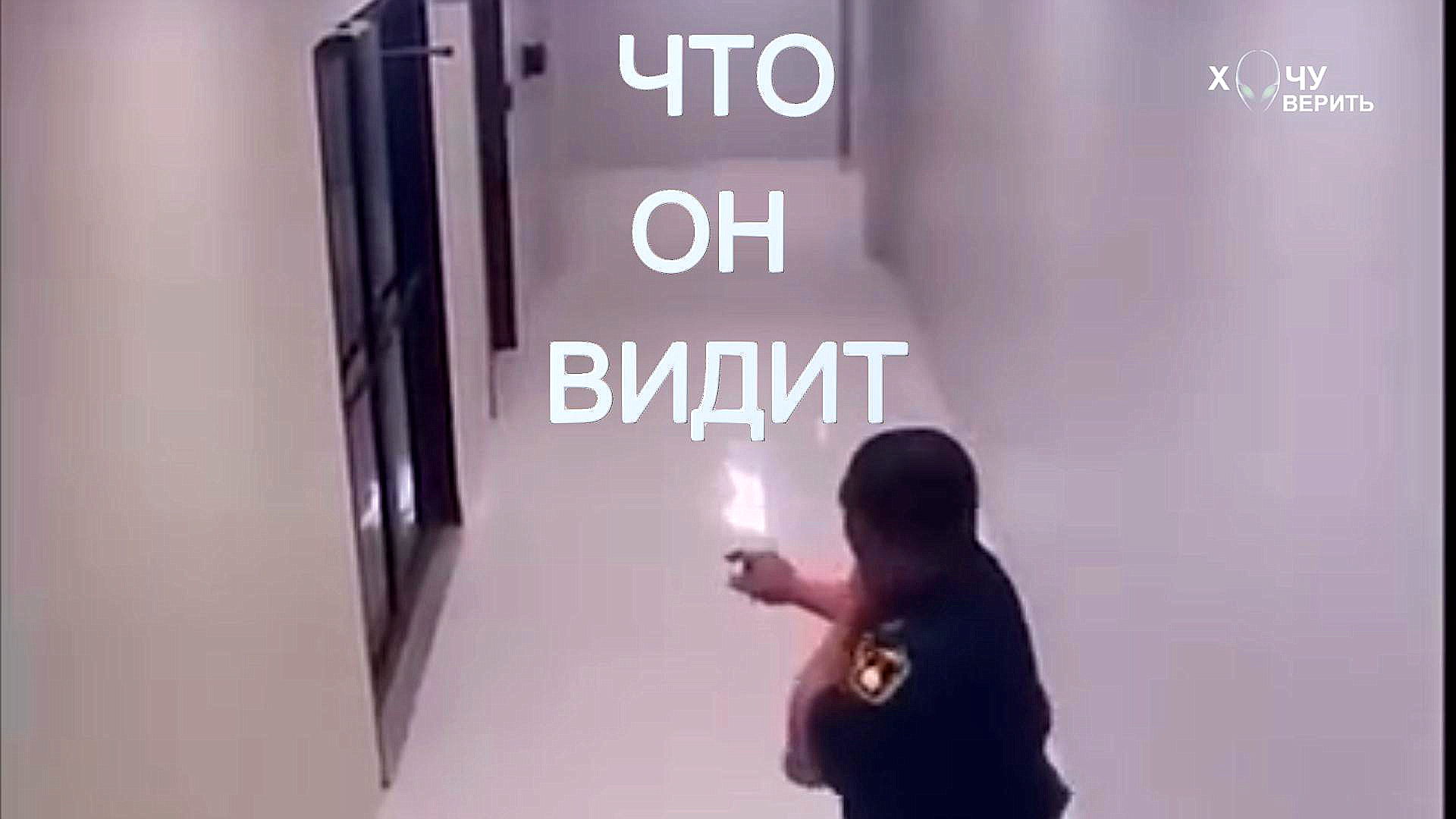 На этих кадрах видно, как охранник разговаривает с кем-то или чем-то, пока коллега не сказал ему, что там никого нет