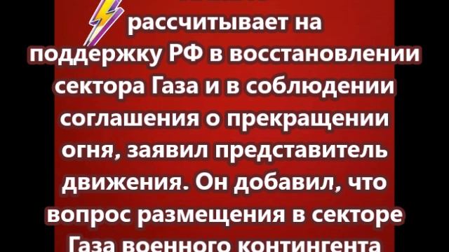 ХАМАС рассчитывает на поддержку РФ в восстановлении сектора Газа